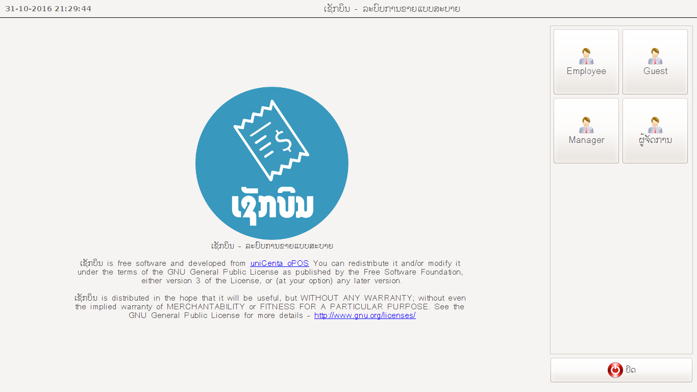ເຊັກບິນແມ່ນໂປຮແກມ Open-source ທີ່ໄດ້ພັດທະນາຕໍ່ມາຈາກ uniCenta POS