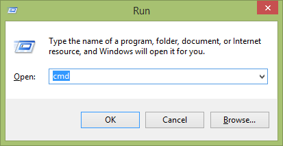 ເປີດໜ້າຕ່າງ Command Prompt ໂດຍການກົດ ❖ + R, ແລ້ວພິມ cmd ແລ້ວກົດ OK
