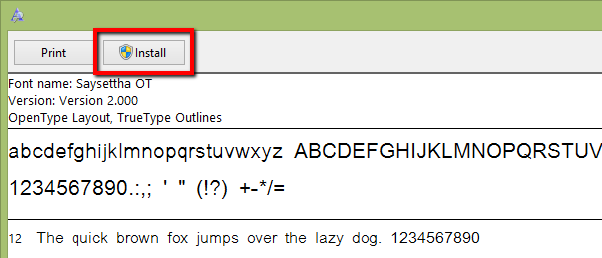 ເຊັກບິນໃຊ້ຟອນ Saysettha OT, ເພື່ອໃຫ້ໂປຮແກມສະແດງພາສາລາວໄດ້ຖືກຕ້ອງ ທ່ານສາມາດດາວໂຫລດຟອນພາສາລາວ Saysettha OT ເປີດຟາຍແລ້ວຕິດຕັ້ງຟອນດັ້ງຮູບ