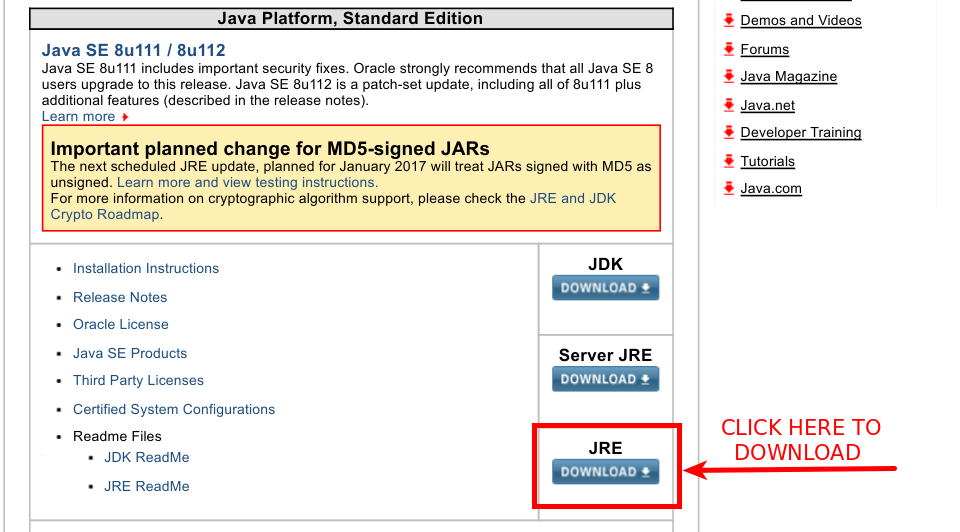 ແລ້ວໃຫ້ກົດເລືອກທີ່ JRE DOWNLOAD