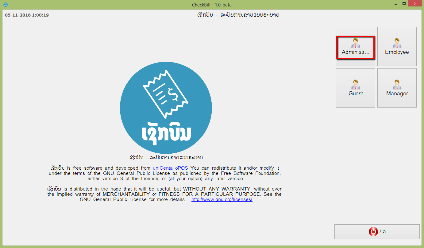 ຫລັງຈາກນັ້ນທ່ານຈະເຫັນໜ້າຕາງເຂົ້າໂປຮແກມ ແລ້ວໃຫ້ເລືອກ Administator