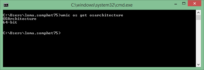 ຫລັງຈາກນັ້ນໃຫ້ພິມ wmic os get osarchitecture ແລ້ວທ່ານຈະເຫັນ 32-bit ຫລື 64-bit ປາກົດຂຶ້ນມາ